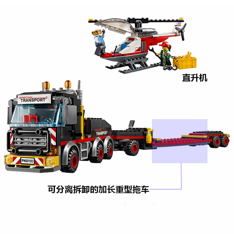 城市系列重型直升机运输车拼装积木卡车男孩子玩具礼物益智力飞机 - 亨乐积木王国