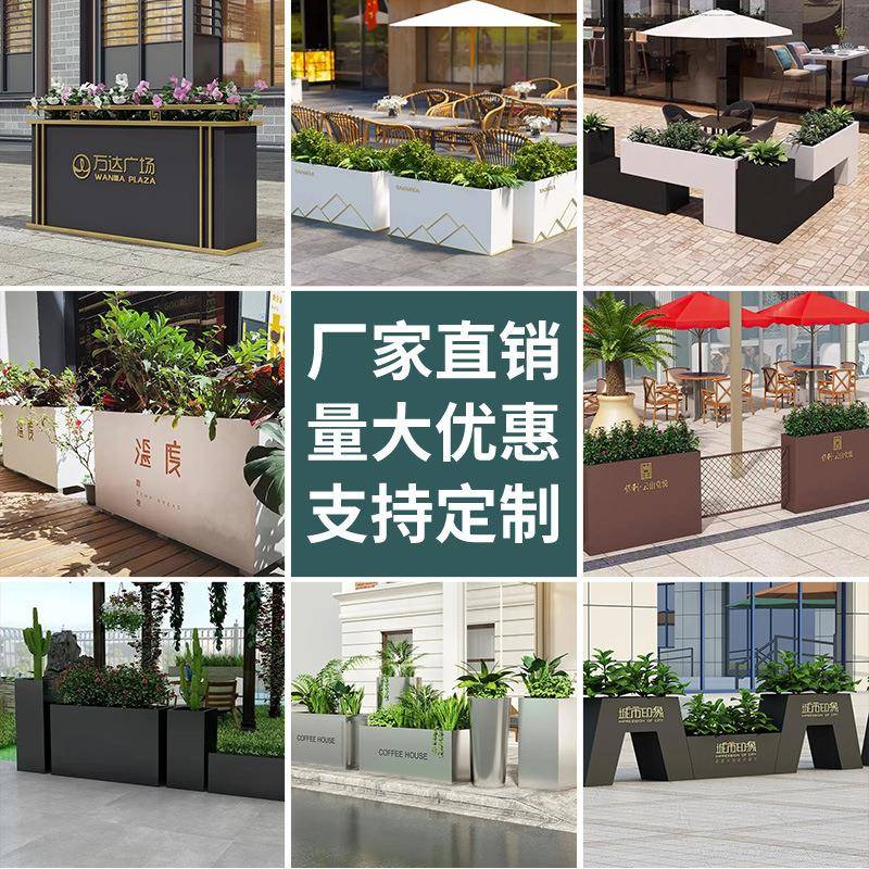 户外花箱组合铁艺园林花槽长方形隔断商业街广场房地产售楼部花坛