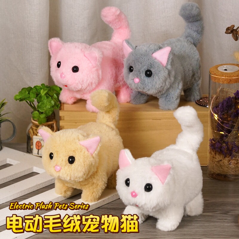 仿真电动小猫咪毛绒玩具会走会叫会摇尾巴宠物电子猫儿童玩具 - 小老板童趣吧