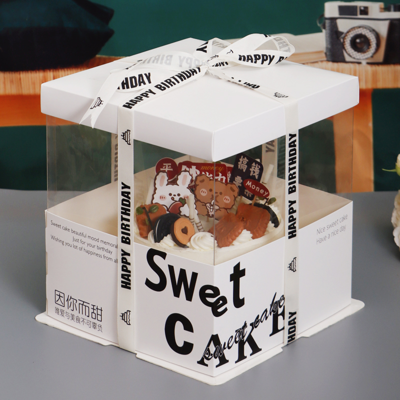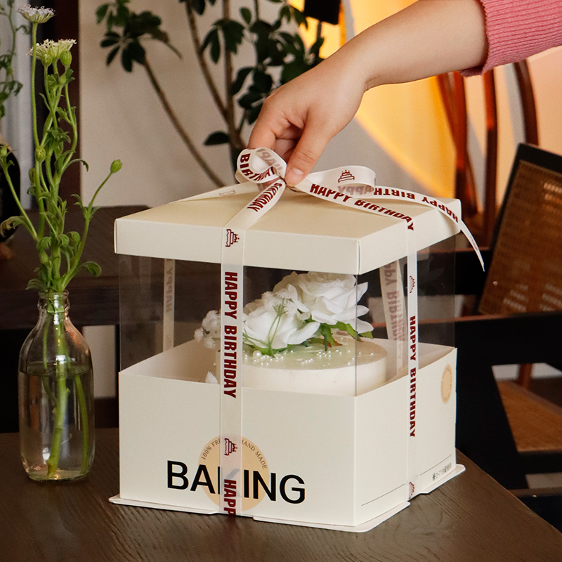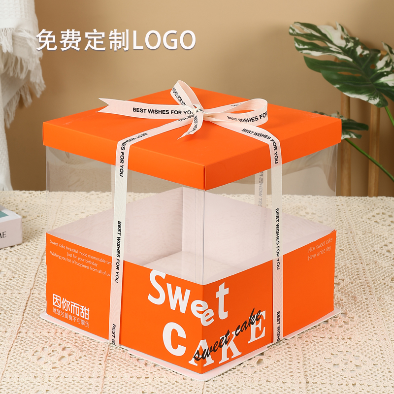 网红透明生日蛋糕盒子包装盒468102寸双层加高新款橙色小红书同款 - 盒星烘焙包装
