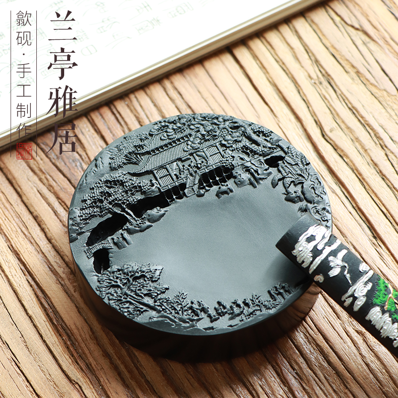 非遗歙砚原石兰亭雅集黑龙尾带石砚台实用天然石头歙砚发墨好磨盘墨盘墨碟书法书画 - 徽昌瑞旗舰店