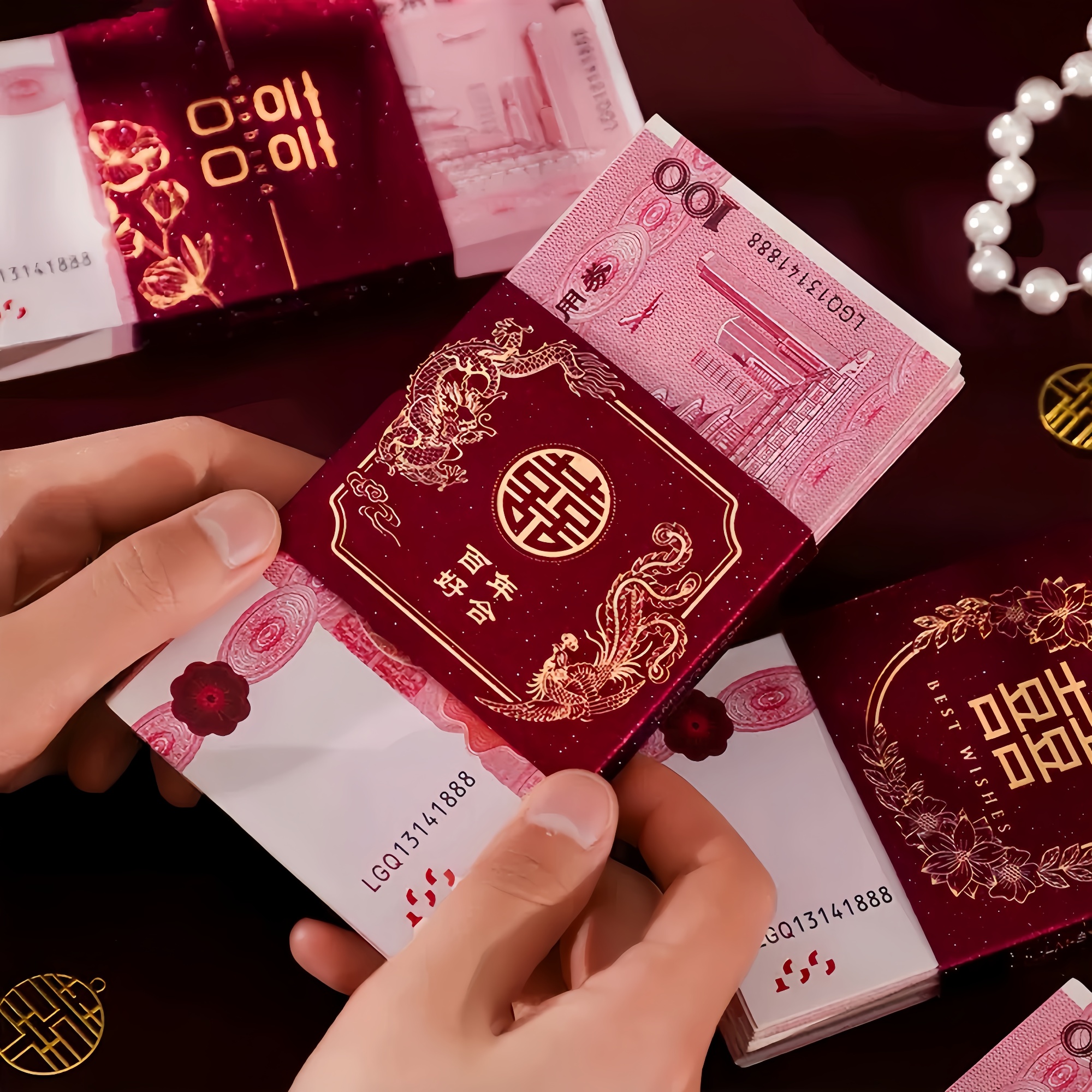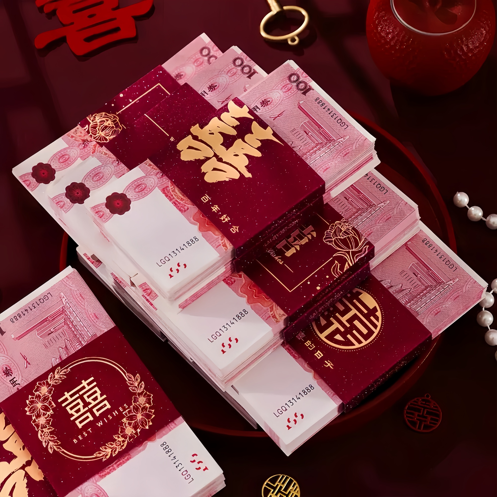 万元卡钱套订婚彩礼捆钱套红包封钱套喜字封条结婚专用万元喜钱带 - 闪购百货店