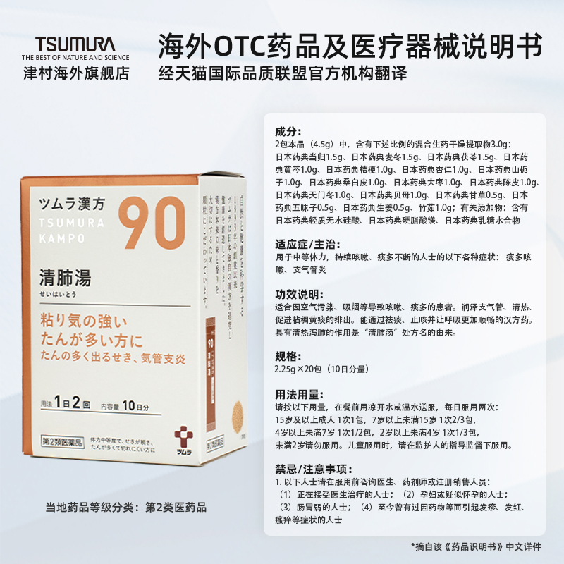 津村清肺汤次抛汉方中成药养润肺清热化止咳痰多气喘支气管炎进口 - 津村海外旗舰店