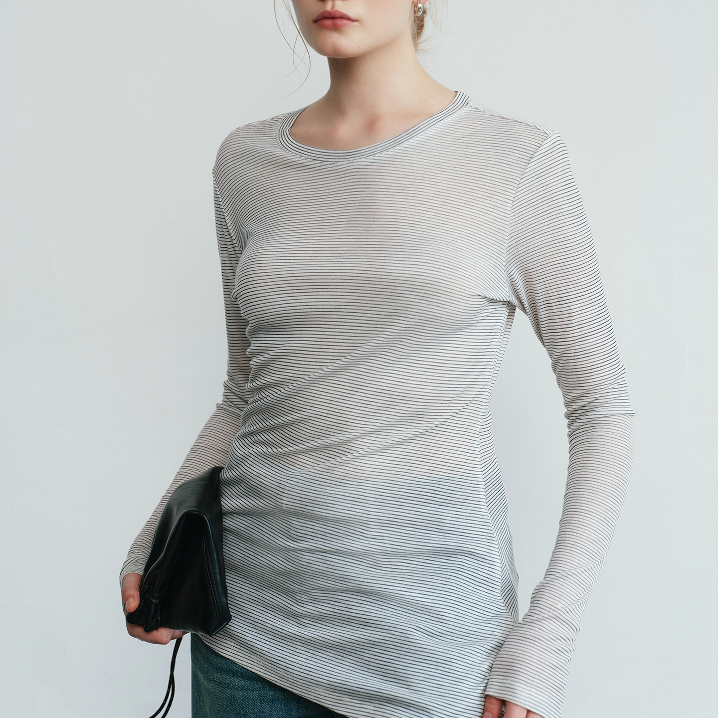 您的位置:他他商城  >   >  Aevum Form 2025秋季新款细条纹圆领薄款天丝羊毛打底衫长袖T恤