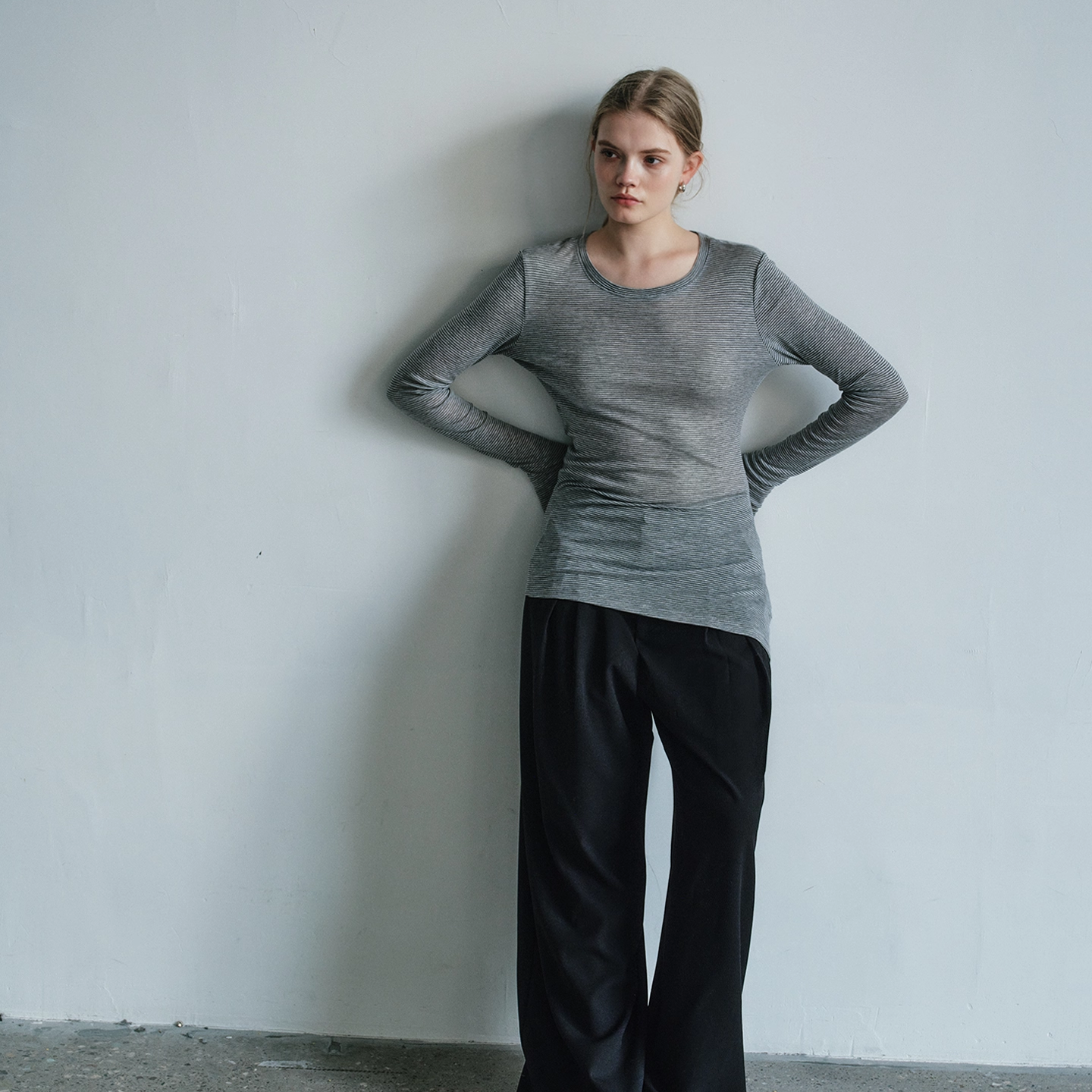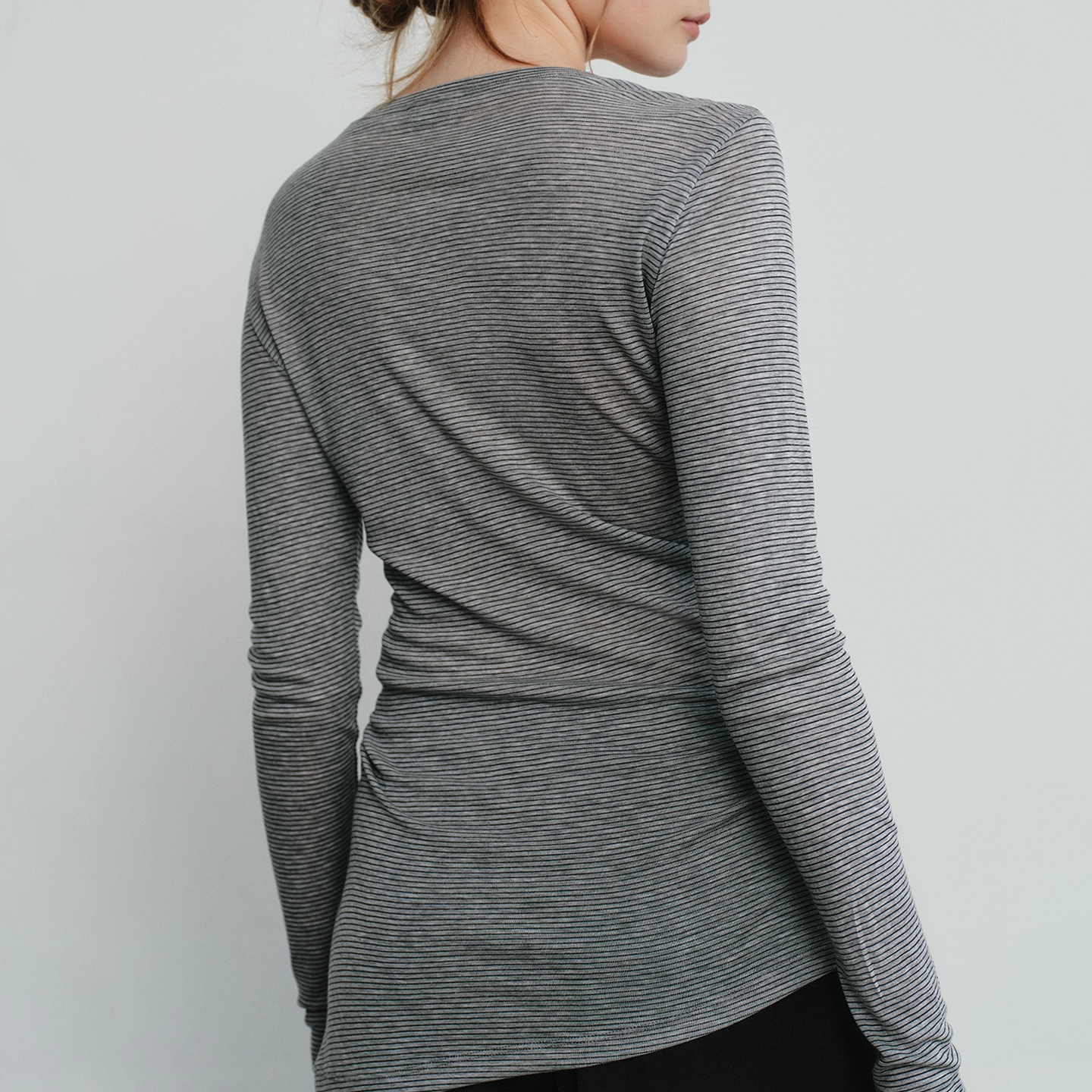 Aevum Form 2025秋季新款细条纹圆领薄款天丝羊毛打底衫长袖T恤 - Aevum Form