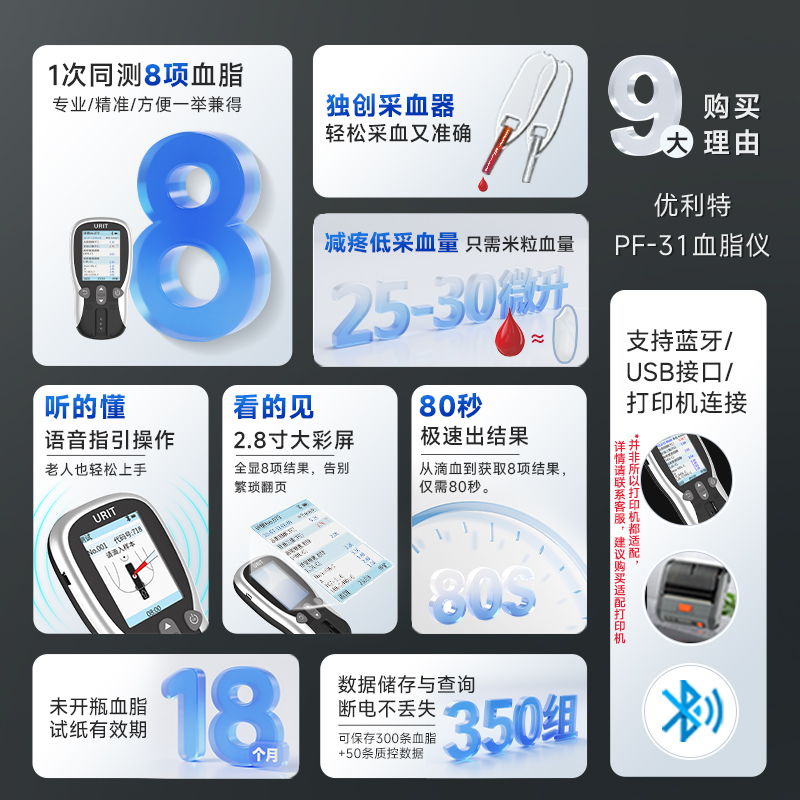 优利特血脂检测仪家用老人测胆固醇甘油三酯检测仪医用血脂测八项 - 优利特旗舰店