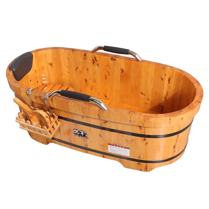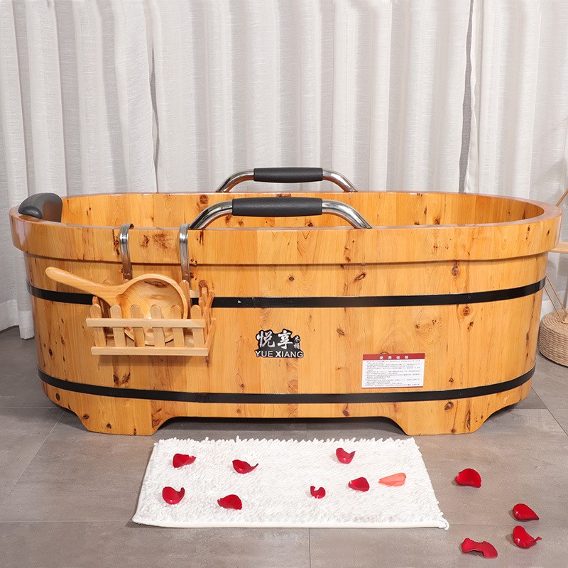 悦享香柏木泡澡洗澡沐浴桶老年人矮款扶手实木浴桶