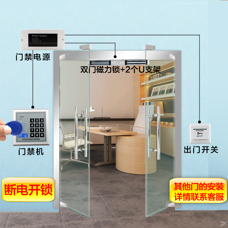 电子门禁系统装刷卡密码玻璃门铁门磁力锁电插锁门指纹一体机