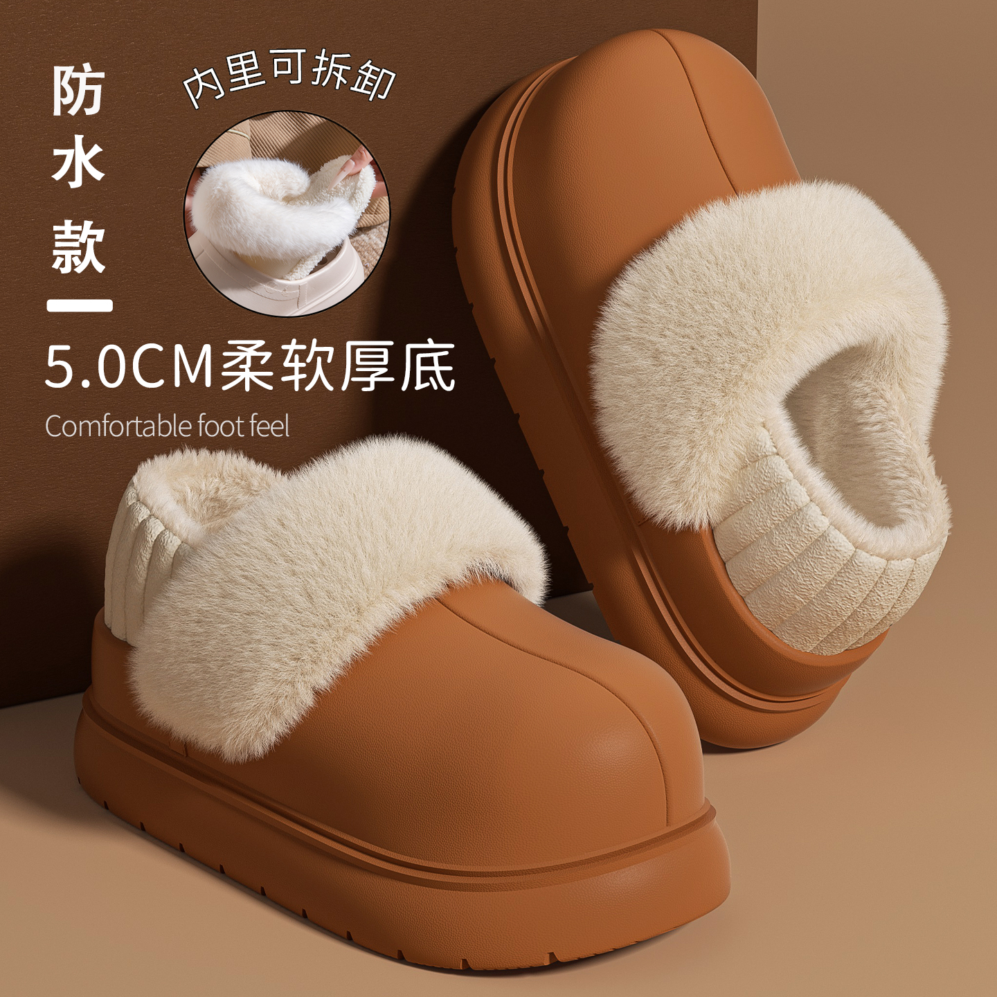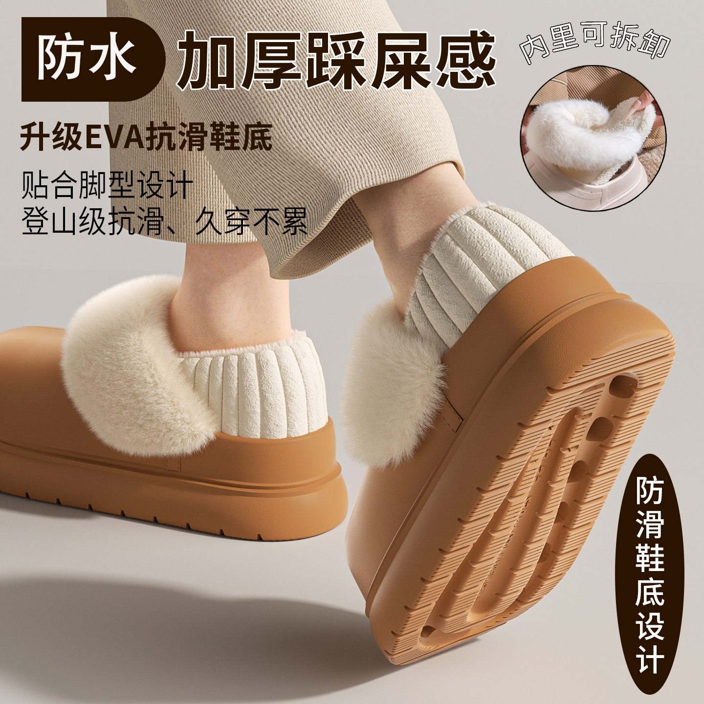 防水棉拖鞋女款冬季包跟2025新款厚底防滑可拆卸加绒保暖棉拖外穿 - 蜜当当旗舰店