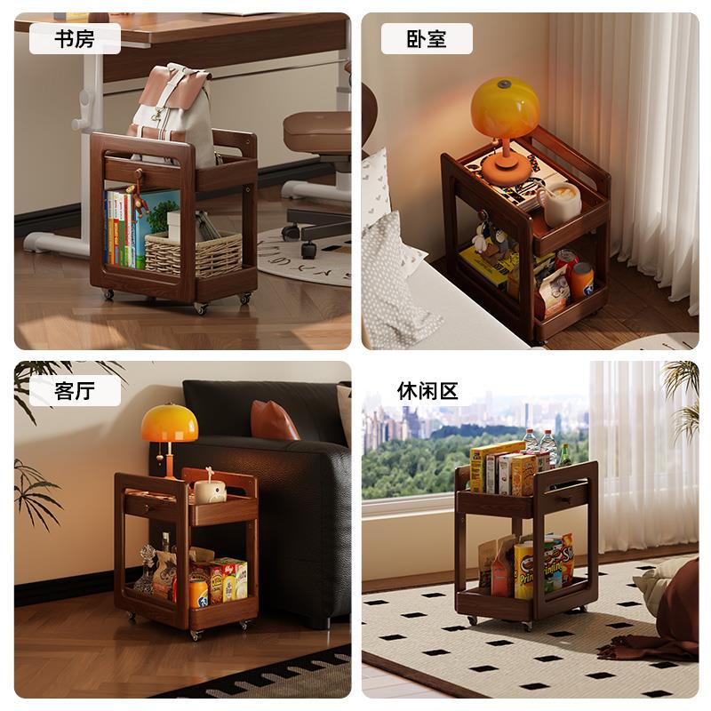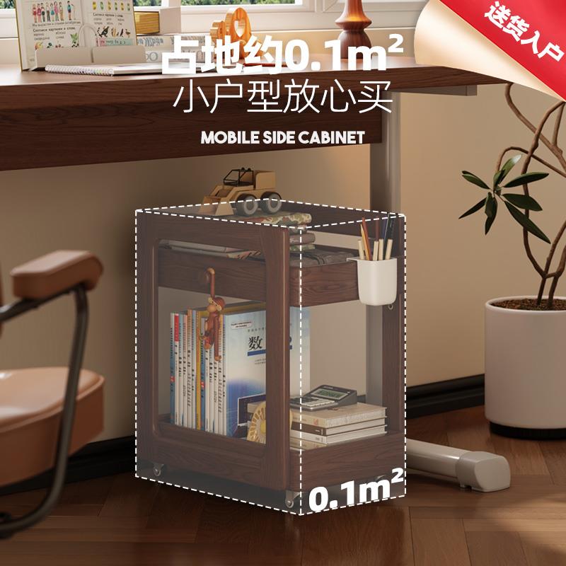 全实木儿童书包架书架落地家用桌旁置物架客厅简约卧室移动小书柜 - 大家快来企业店