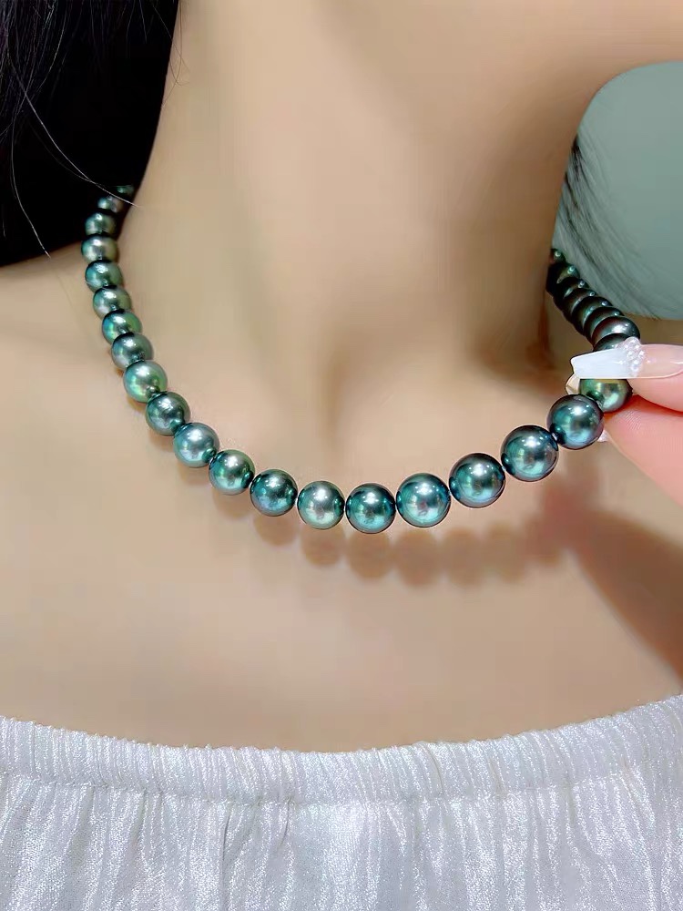 法式轻奢珍珠项链大溪地孔雀绿项链深海贝珠镜面光泽高级感锁骨链 - Alice全球严选折扣店