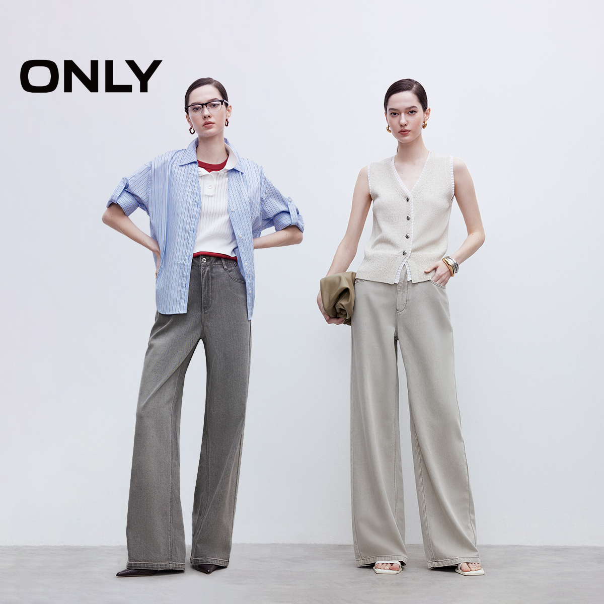 ONLY2025冬季新款腰部显瘦拼接设计高腰宽松长裤直筒裤牛仔裤女 - ONLY官方旗舰店