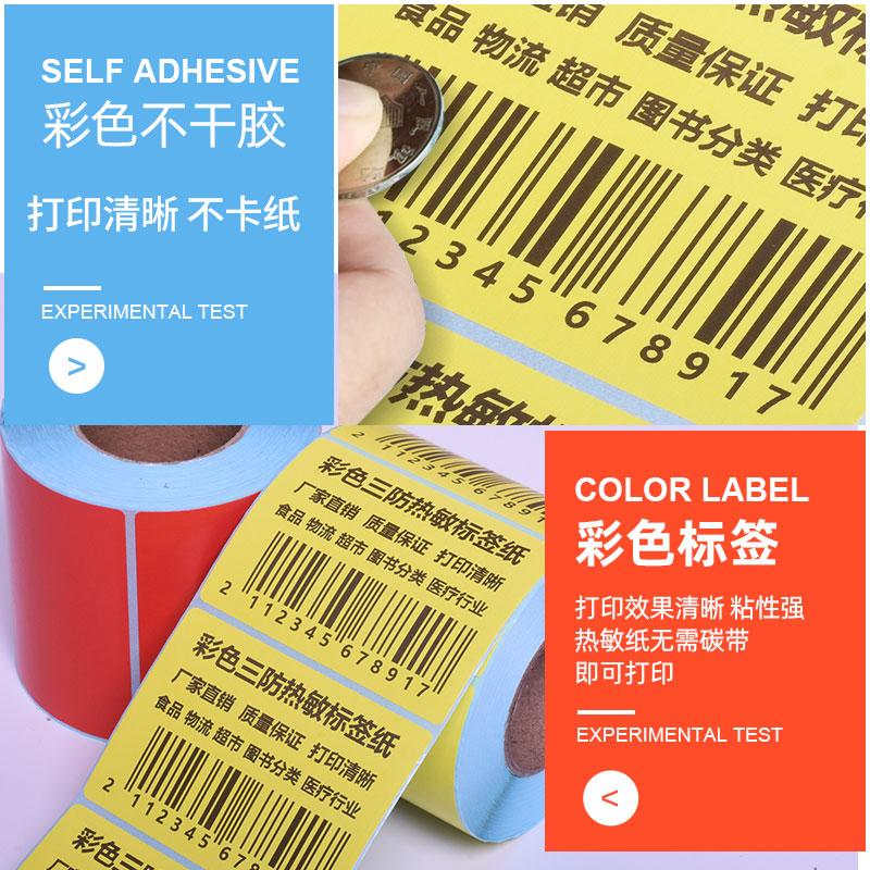 彩色三防热敏标签纸60*40 30 20 50 70 80 90 100x100 150 红黄蓝绿不干胶食品超市奶茶物流价格条码打印贴纸 - 粤勤旗舰店