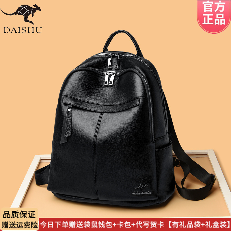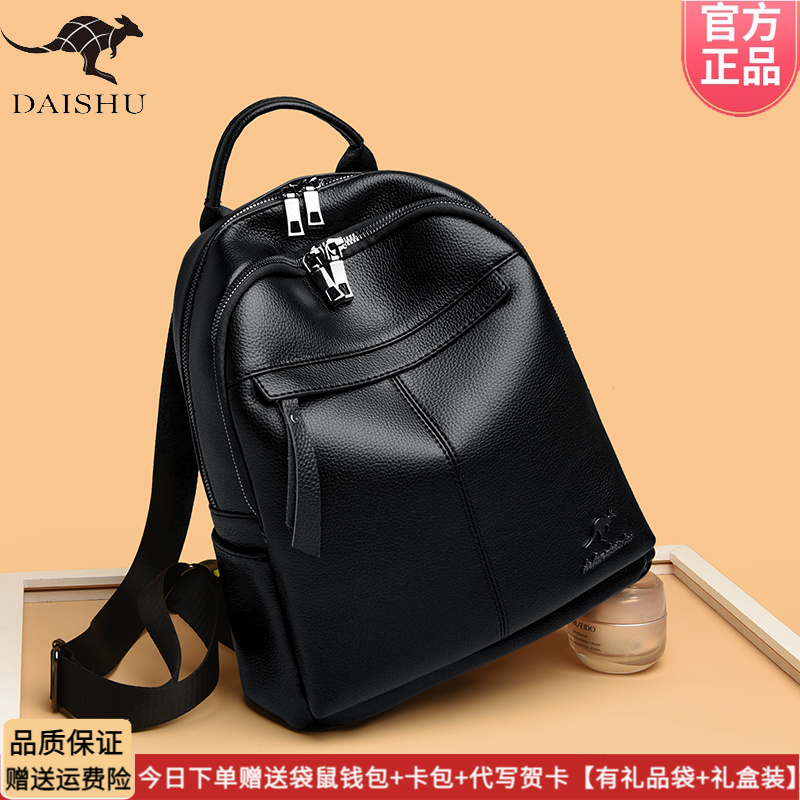 正品袋鼠皮包双肩包女士2025新款时尚妈妈旅行背包头层软皮大容量 - 袋鼠正品真皮专柜店