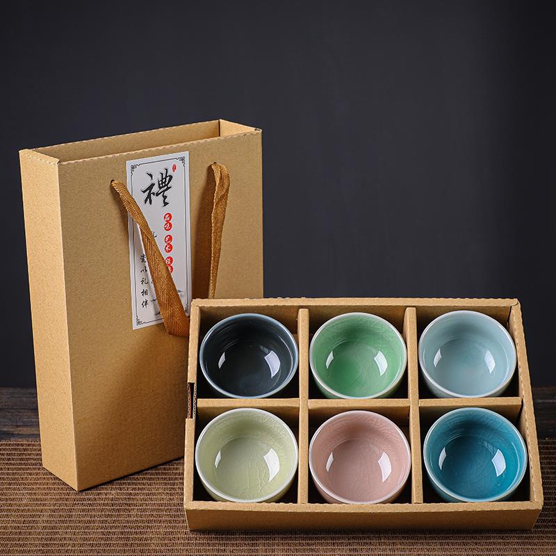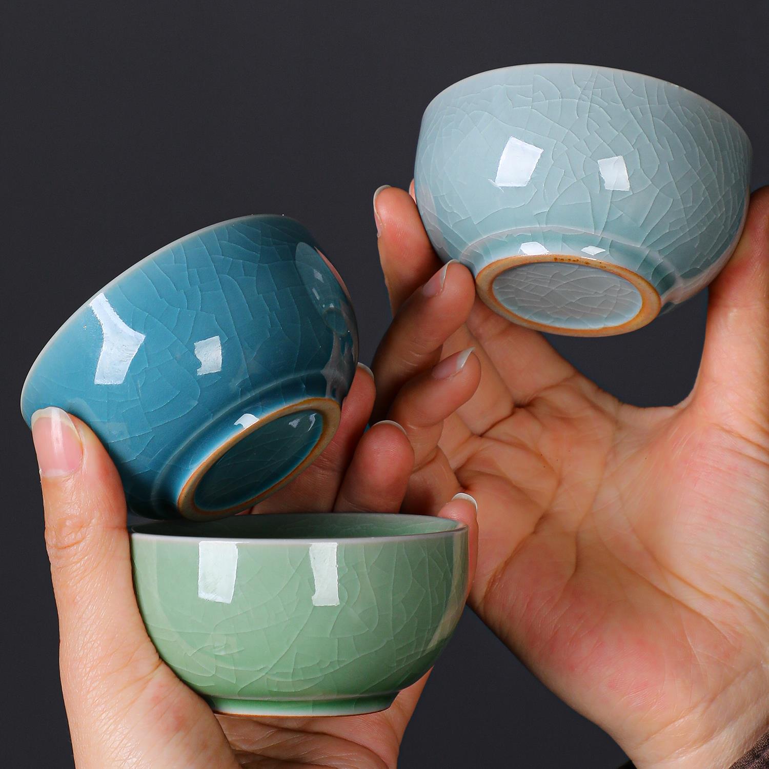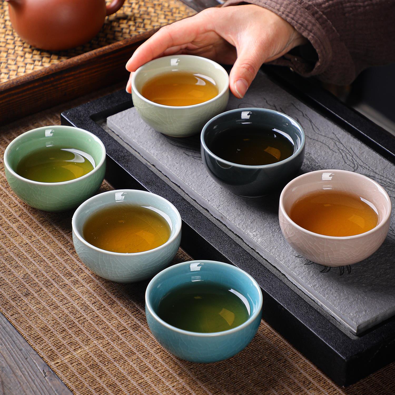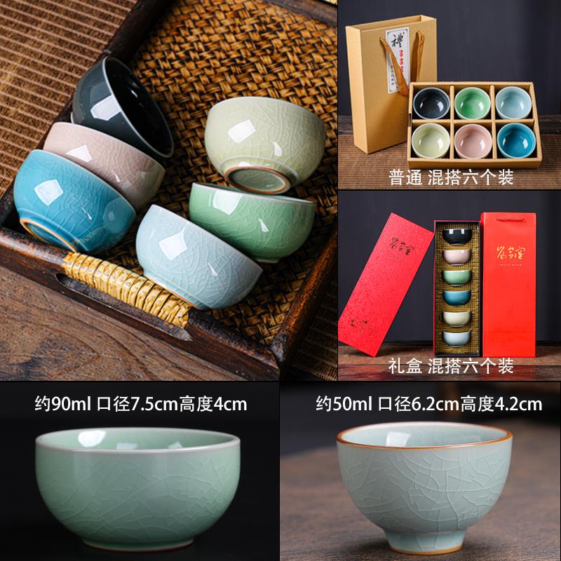 冰花冰裂纹主人杯功夫茶杯6祇装汝窑茶具小杯子喝茶茶碗陶瓷高端 - 斯凌百货官营店