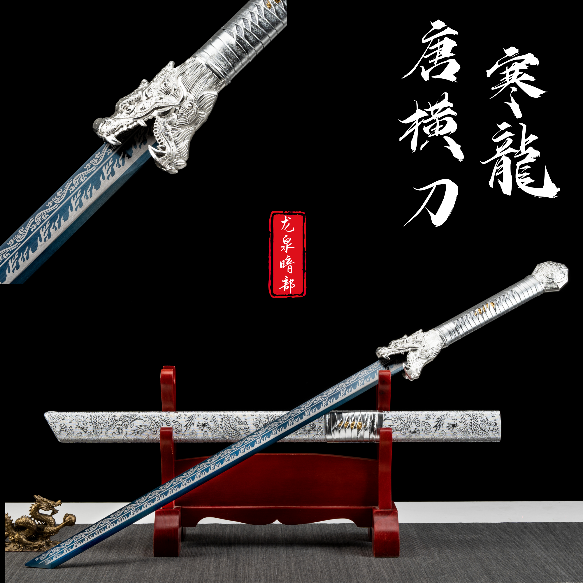 龙泉镇宝剑唐横刀绣春刀一体刀剑唐剑高锰钢刀具防身冷兵器未开刃 - 龙泉暗部北屿