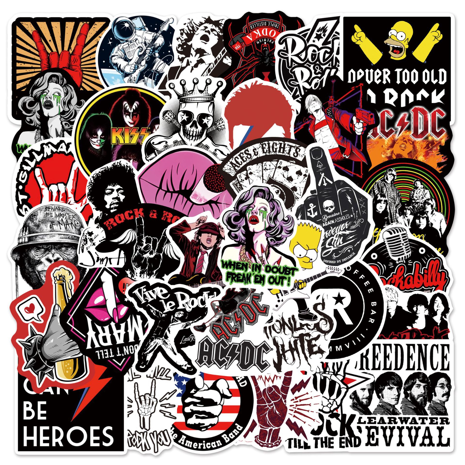 54张摇滚音乐涂鸦贴纸旅行箱吉他汽车电脑防水头盔贴画 rock roll