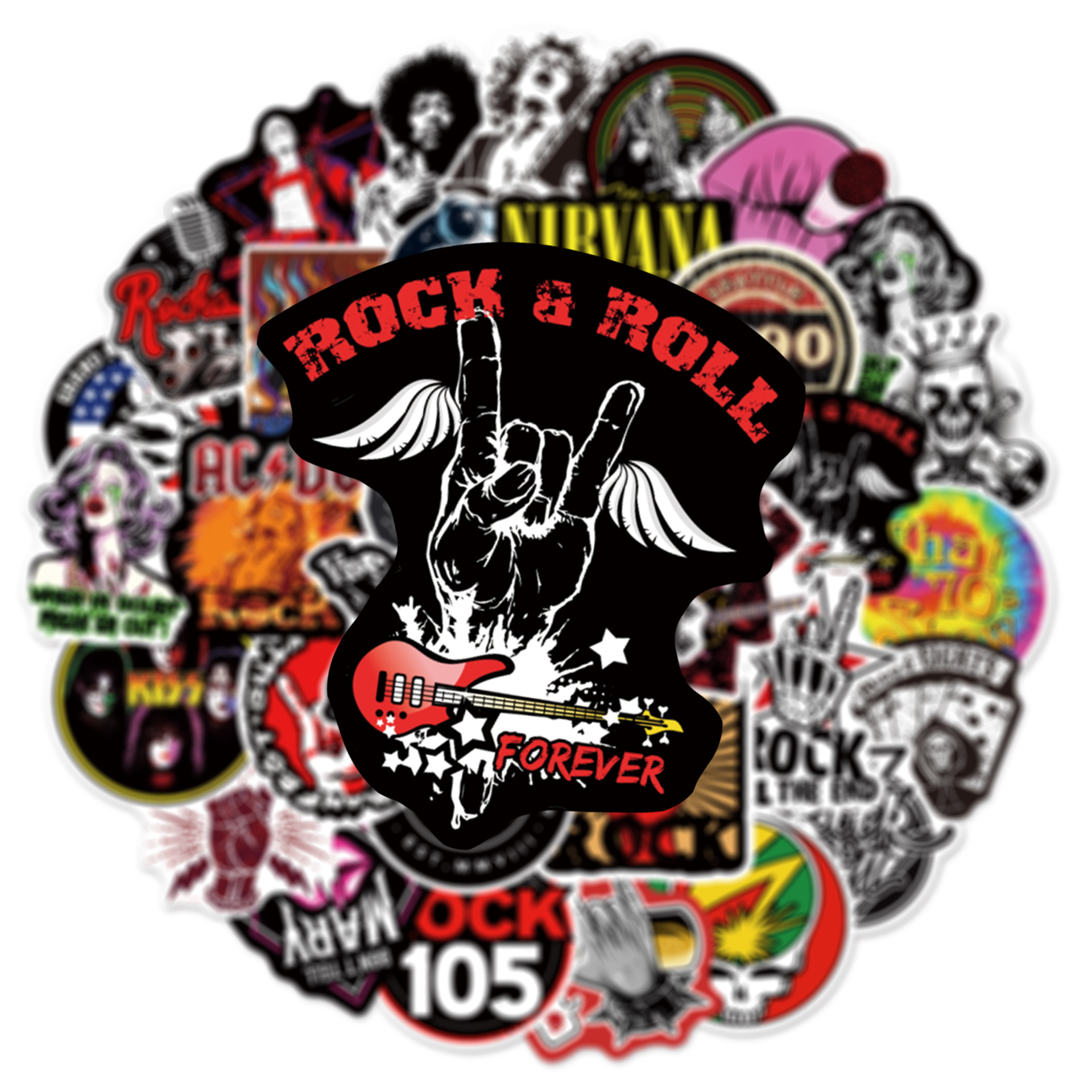 54张摇滚音乐涂鸦贴纸旅行箱吉他汽车电脑防水头盔贴画 rock roll - 关滋秋旗舰店