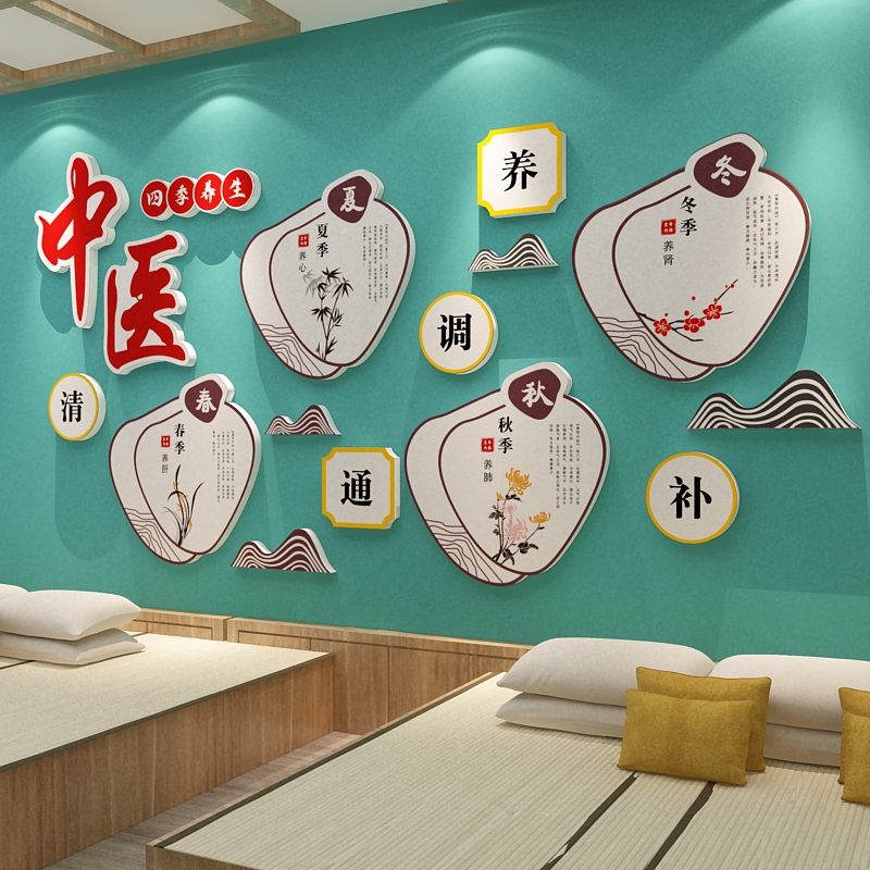 中医养生馆装饰画形象文化挂画艾灸推拿头理疗汗蒸背景墙壁贴设计 - 悟空家饰