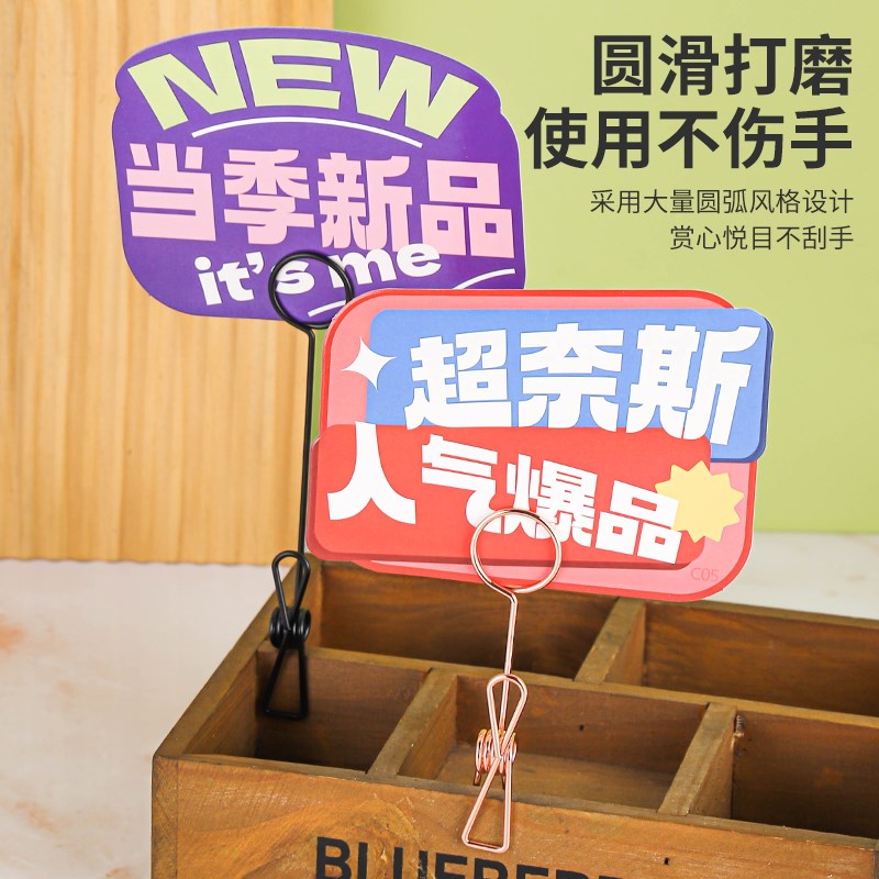 您的位置:他他商城  >   >  立式价格标签夹子桌卡广告夹桌号牌夹面J包甜品店商品标价签展示