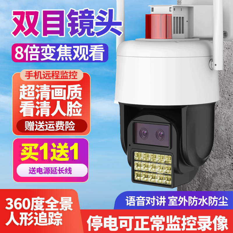 双目变焦监控摄影头家用远程手机室外高清夜视360度户外无线摄像