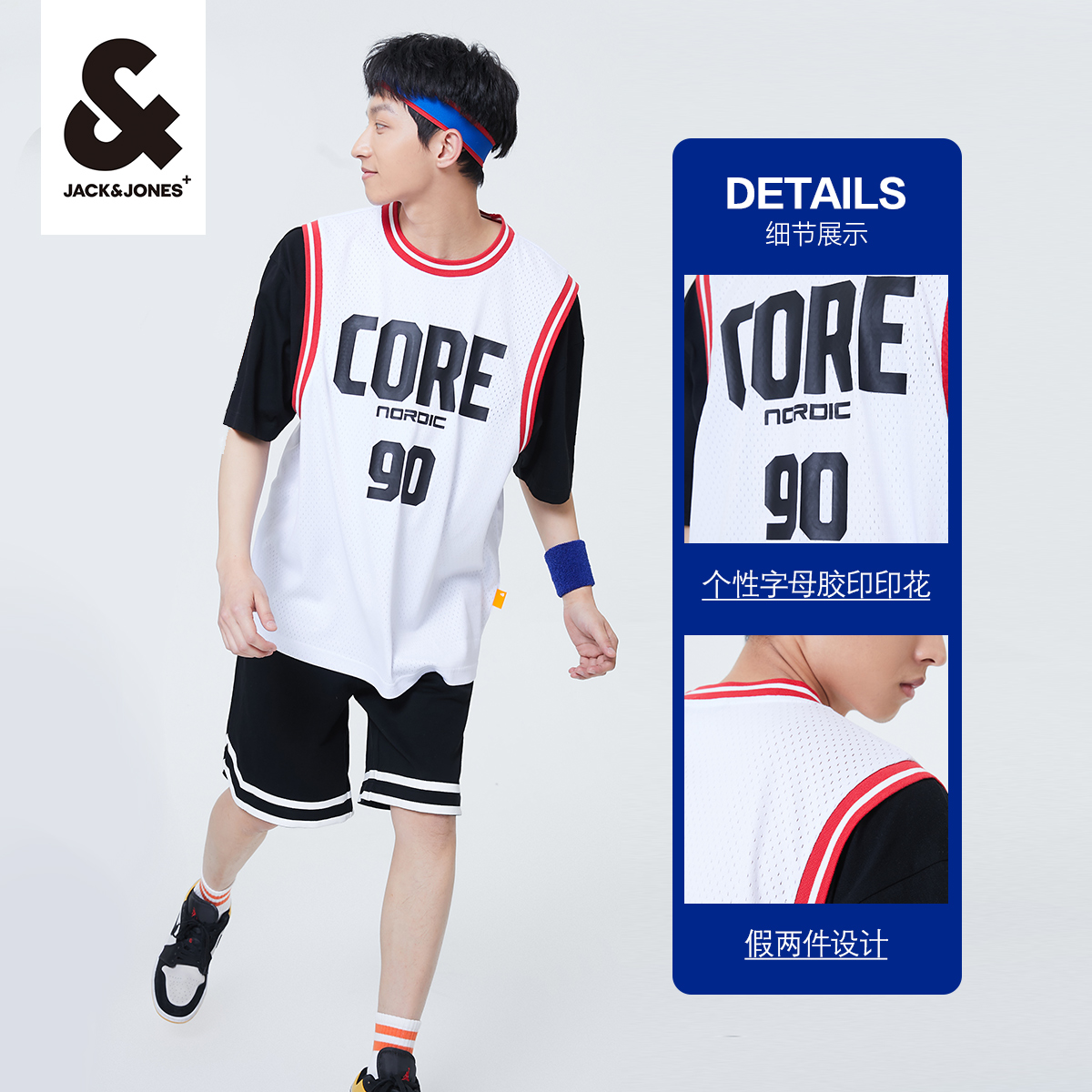 杰克琼斯男装短袖t恤男款打底衫夏季假两件短袖男士情侣衣服字母 - 杰克琼斯官方奥莱旗舰店