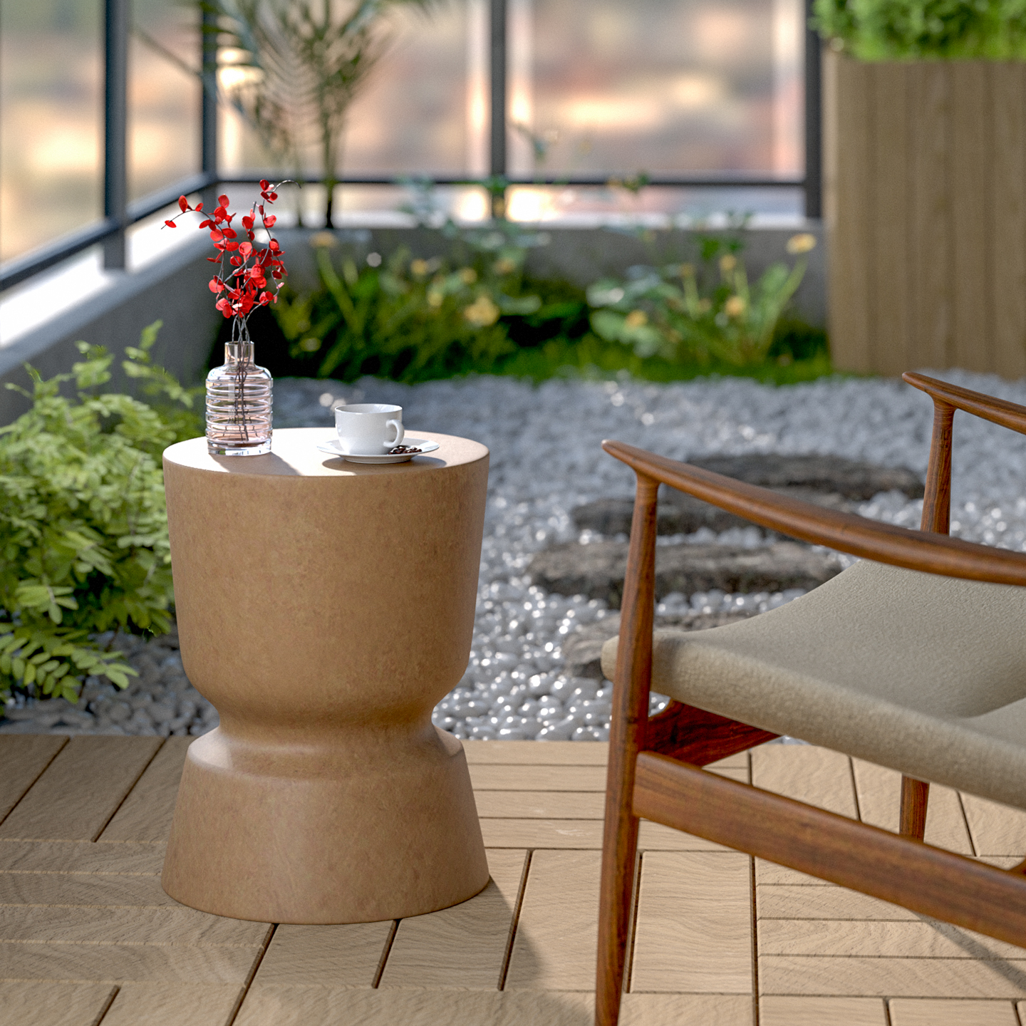 侘寂风小茶几小圆桌子镁泥沙发边几花几庭院户外角几民宿风咖啡馆 - 凌虹园艺