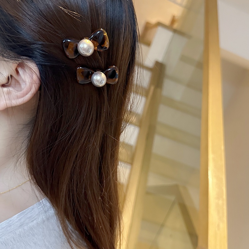 气质少女可爱小对夹时尚网红珍珠发夹女高级感满钻蝴蝶结豹纹夹子 - 拉菲小姐的配饰店
