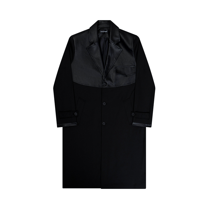 您的位置:他他商城  >   >  秋冬小众解构PU皮拼接设计风衣男韩版单排扣长款过膝痞帅大衣外套