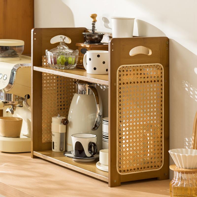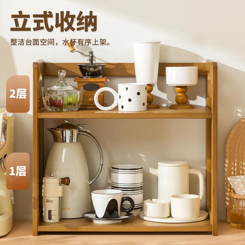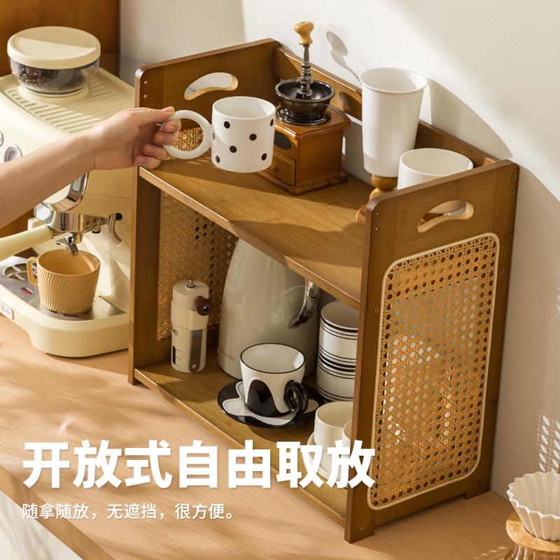 杯子置物架桌面水杯架茶具茶杯水壶整理架吧台咖啡角藤编架子 - 特变百货官营店