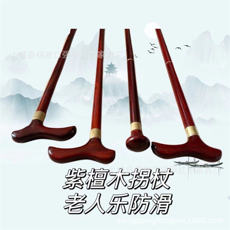 小叶紫檀拐杖檀木手杖实木登山杖祝寿实用礼老年人防.滑拐棍豪华 - 山裕堂日用品的小店46