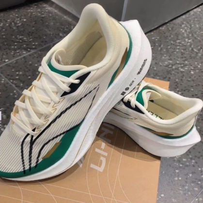 LiNing李宁 飞电4 Challenger 减震低帮 长跑跑步鞋 男款 米绿 - 蛋挞体育sneakers