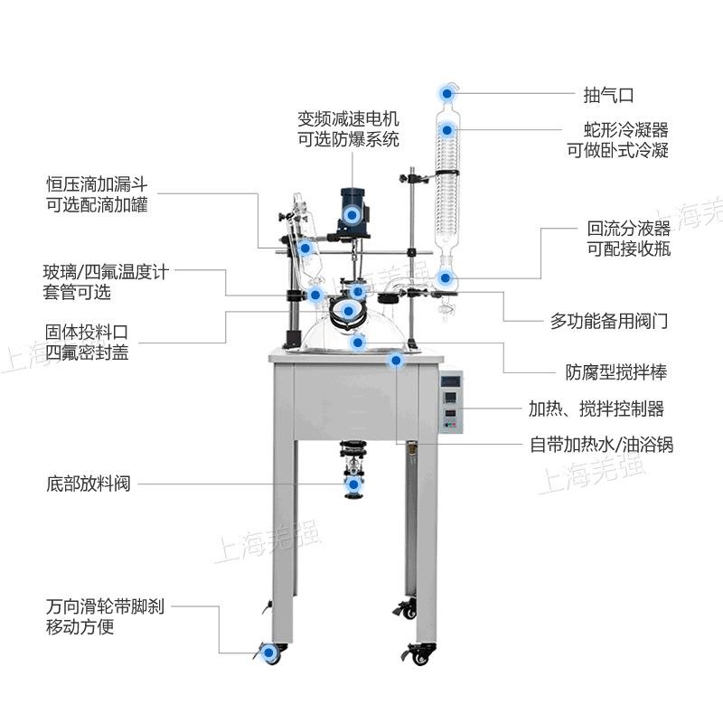 单层玻璃反应釜实验室化工搅拌反应器蒸馏电加热200L玻璃反应釜 - 刘明诚1258的小店57