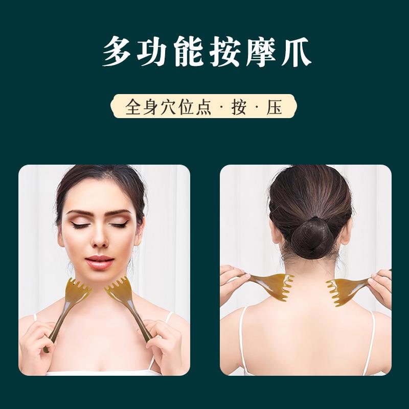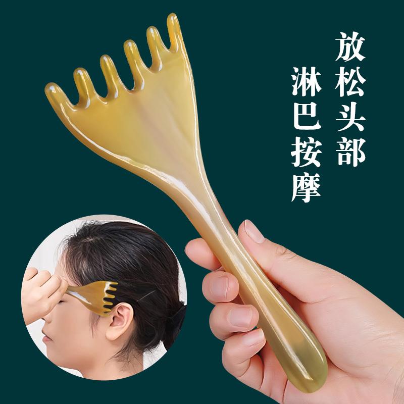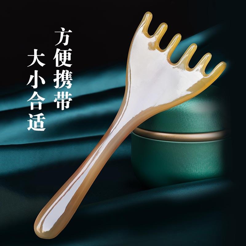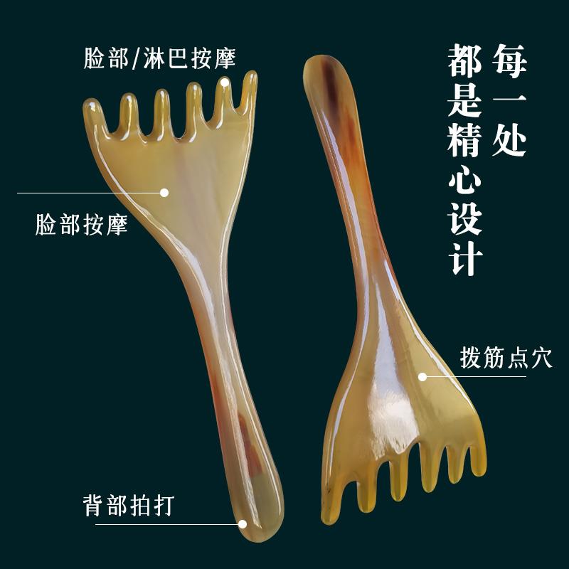 天然真牛角五爪头部按摩梳头皮经络疏通肩颈刮痧挠痒长臂耙耙梳子 - 万凯百货官营店