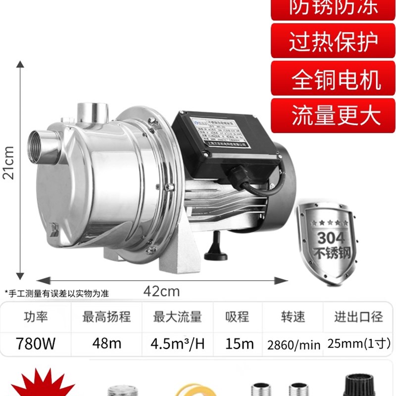 您的位置:他他商城  >   >  不锈钢增压泵加压泵喷n射泵抽水泵自吸泵家用水井全自动220v自来