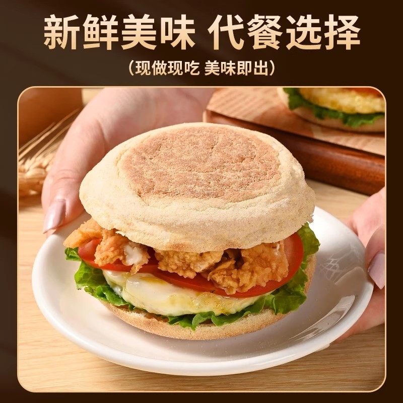 新店开业!5折抢】英式全麦麦芬汉堡胚面包高纤维健康早餐三明治