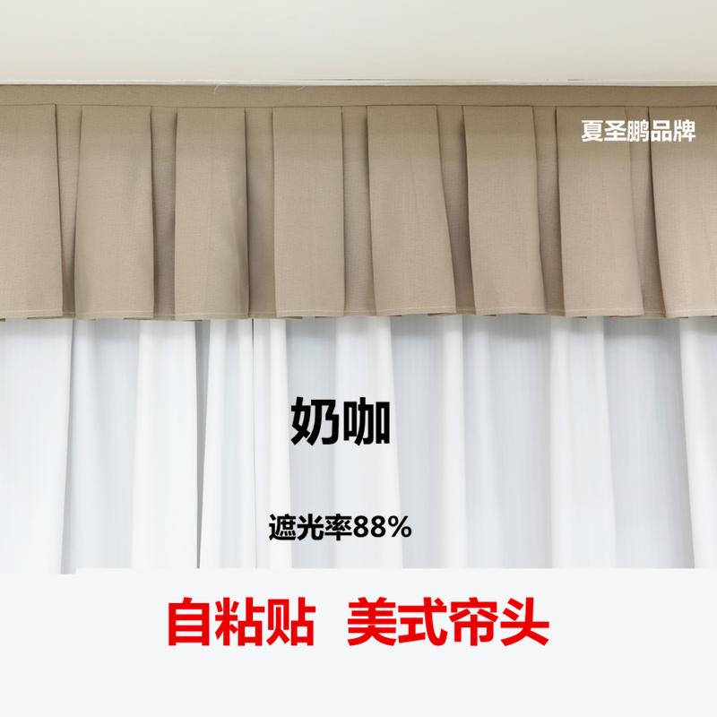 定制全遮光窗帘帘头成品窗幔头顶上漏光自粘魔术贴免安装窗帘头幔