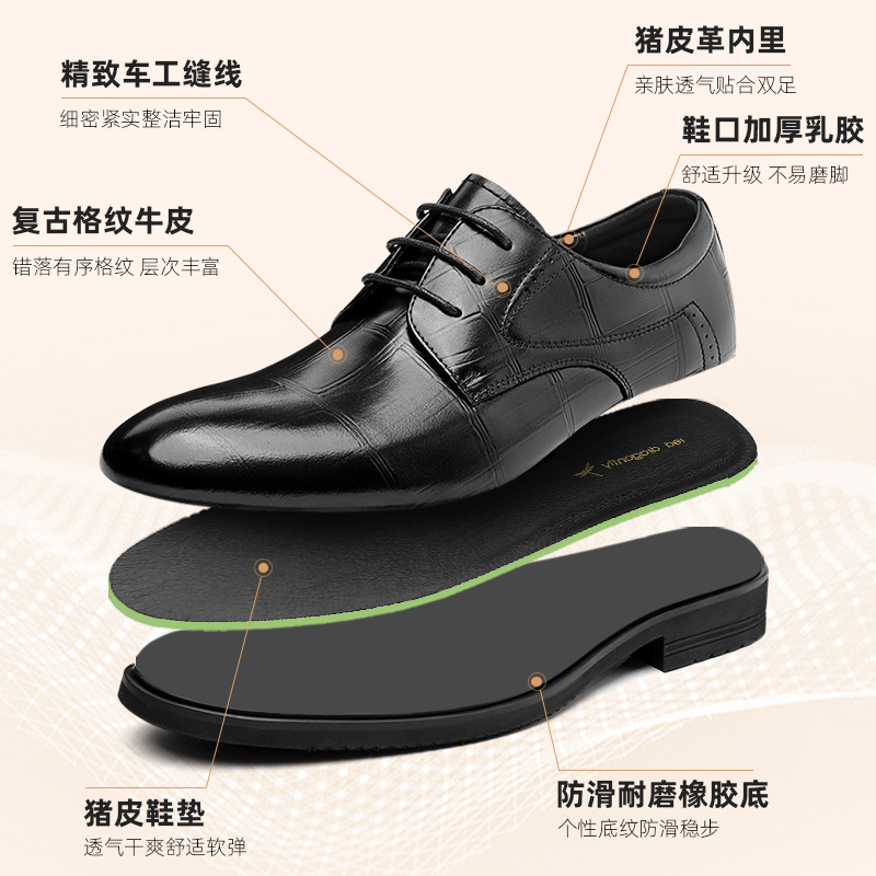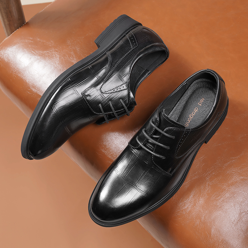 红蜻蜓男鞋春秋新款商务正装皮鞋真皮男士结婚新郎鞋内增高德比鞋 - 红蜻蜓男鞋官方旗舰店