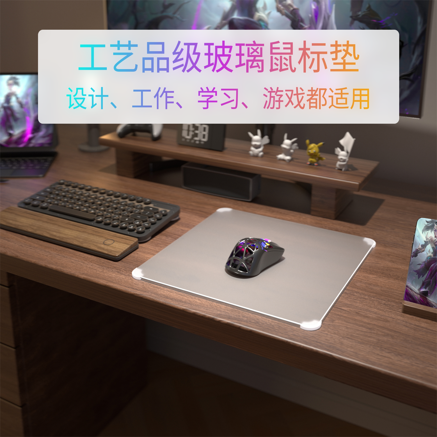 Aero Glass 电竞级FPS微蚀刻磨砂钢化玻璃鼠标垫  耐磨防刮可定制
