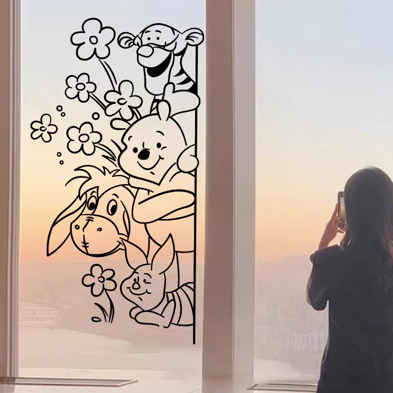 小熊维尼和朋友们ins风网红店铺卡通贴纸蛋糕奶装店玻璃门墙贴画