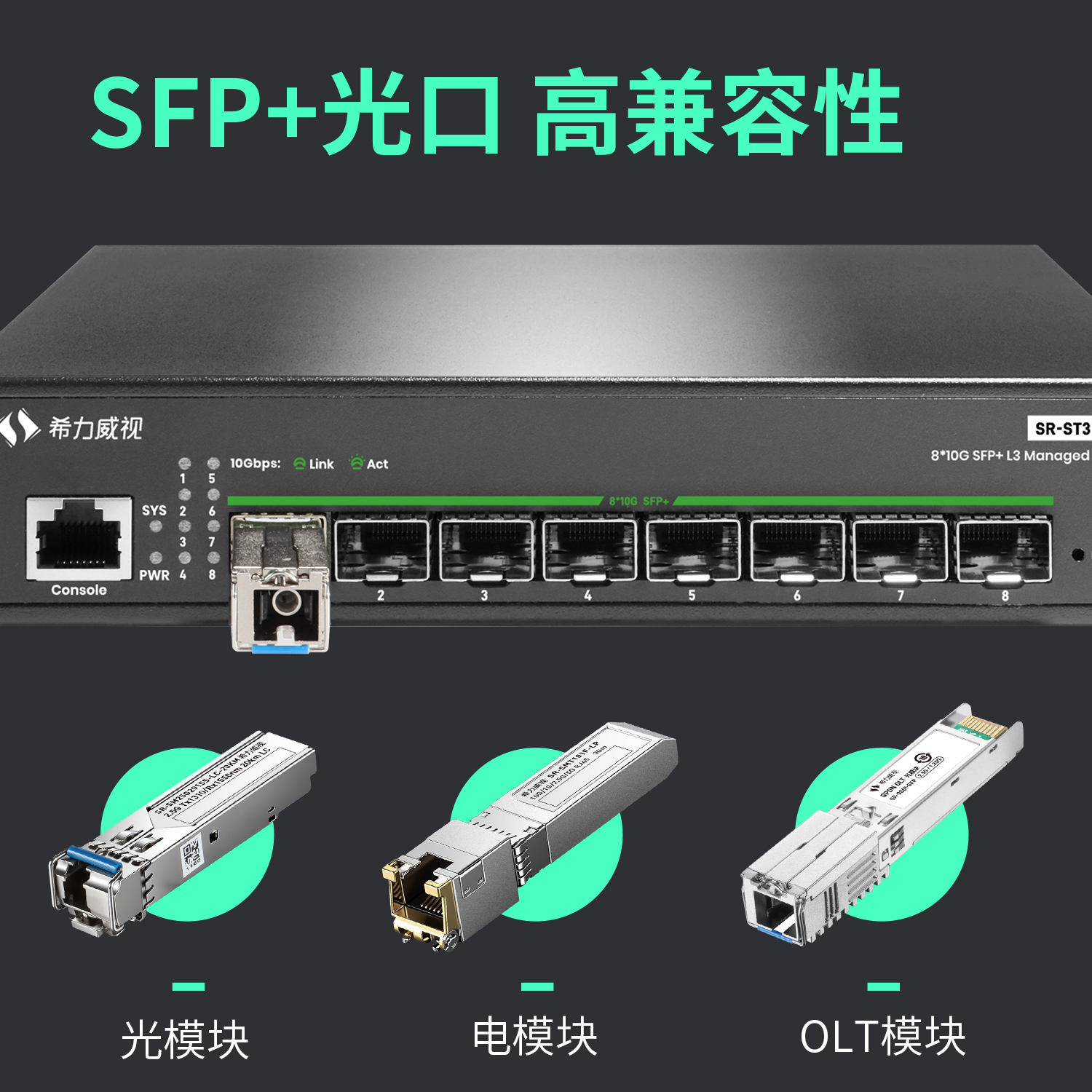希力威视8口全万兆交换机三层网管全光VLAN 汇聚SFP+光口高速10G光纤兼容1G2.5G10G - 希力威视旗舰店