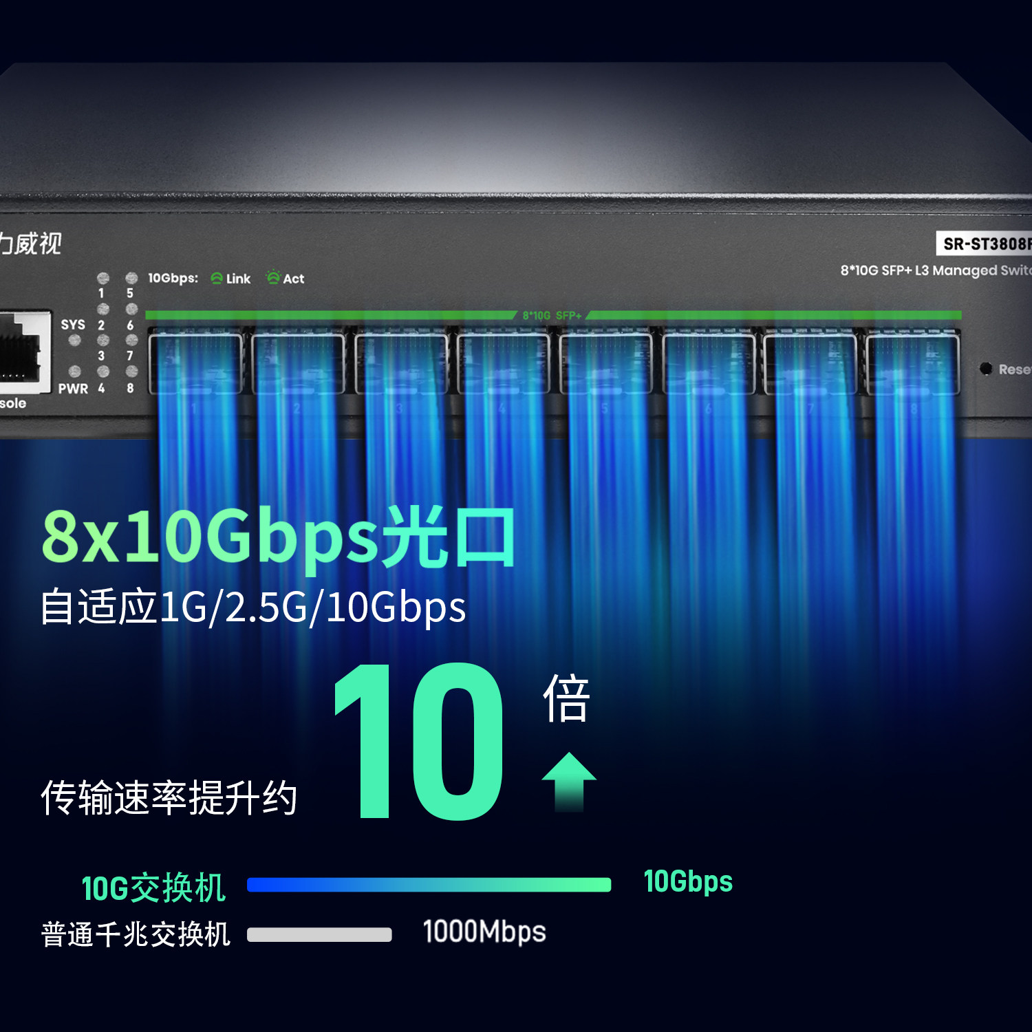 希力威视8口全万兆交换机三层网管全光VLAN 汇聚SFP+光口高速10G光纤兼容1G2.5G10G