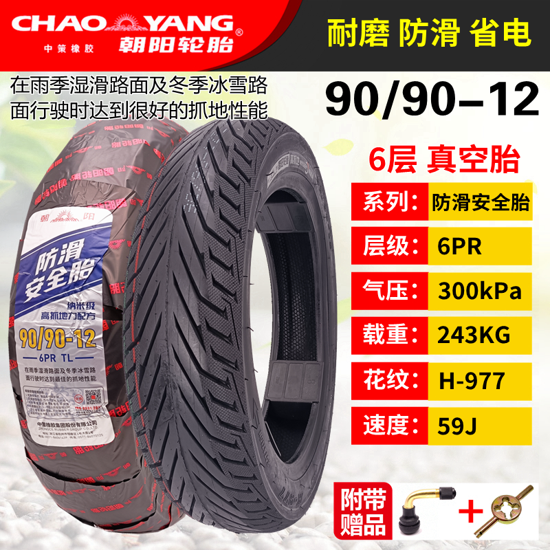 朝阳轮胎90/90-12真空胎H565电动摩托车钢丝防刺防爆正新外胎 - 一腾电动车配件