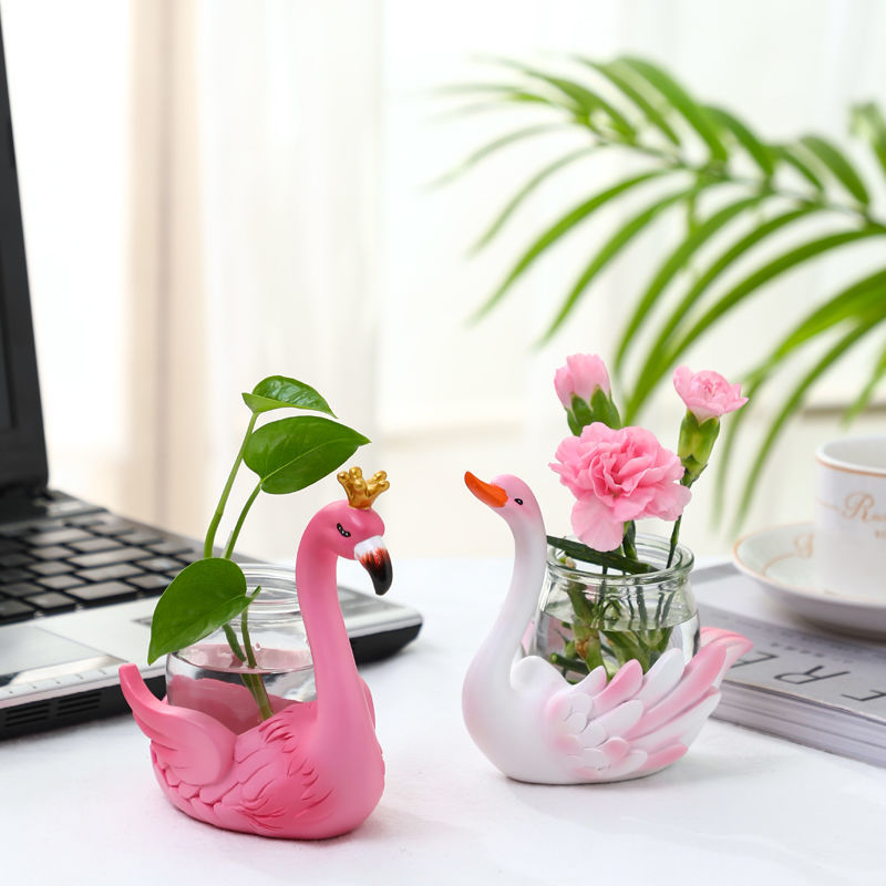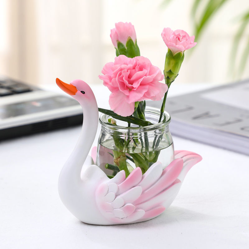 创意绿萝水培插花小摆件可爱天鹅动物办公L室书房桌面透明玻璃装 - 山玲句日用品的小店19