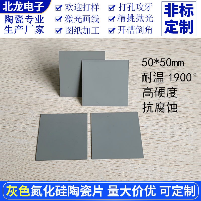 氮化硅陶瓷片50*50/100*100mm耐高温基板SI3N4高硬度厚0.32/0.635