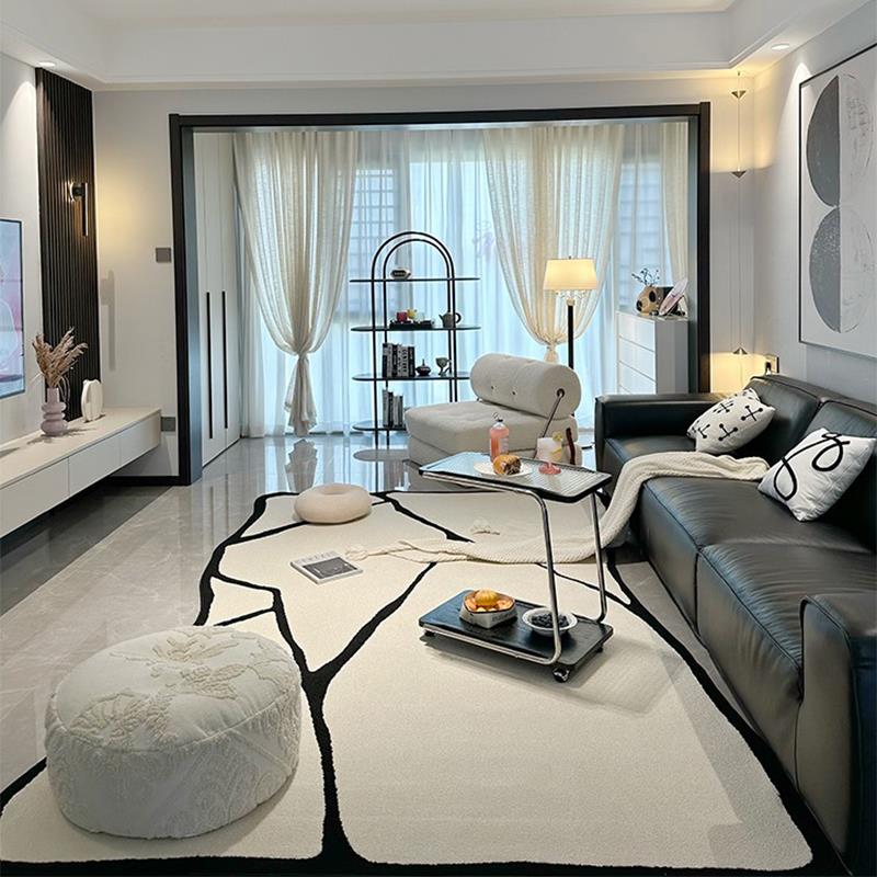 RUG原创设计 黑白风客厅地毯轻奢高级感复古沙发茶几毯地垫不规则 - 家园百货官营店