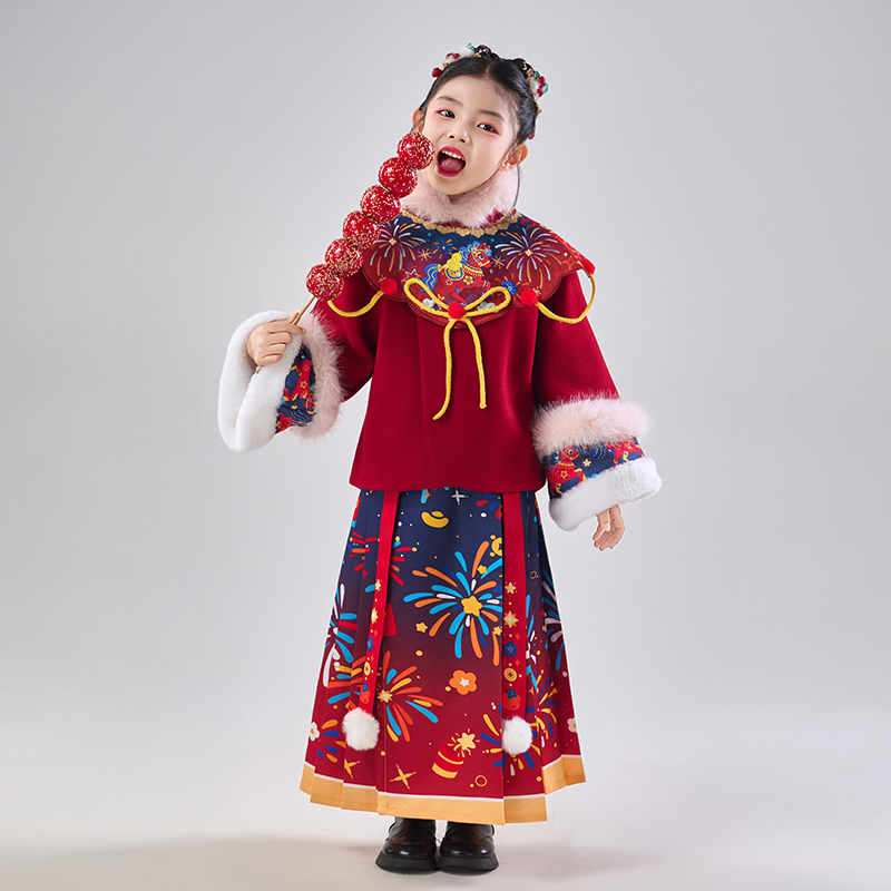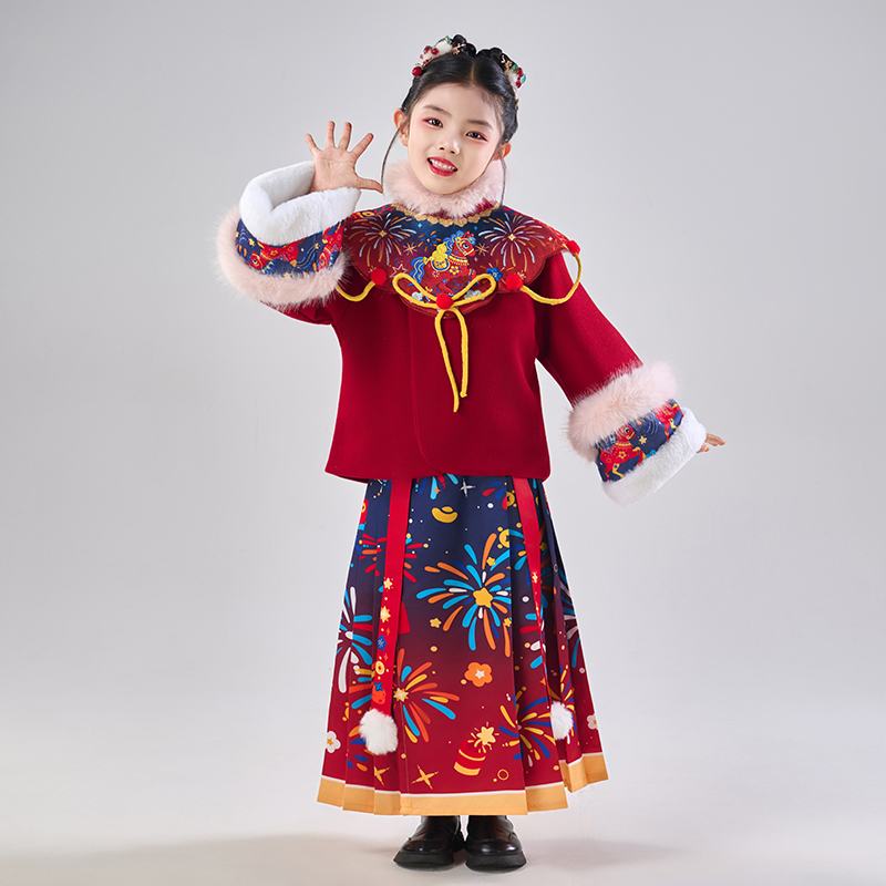 汉服女童儿童拜年服中国风马面裙古装秋冬唐装喜庆宝宝过新年衣服 - 童话嘀嗒旗舰店