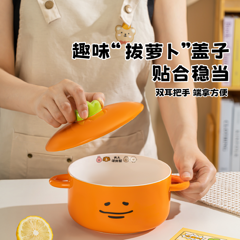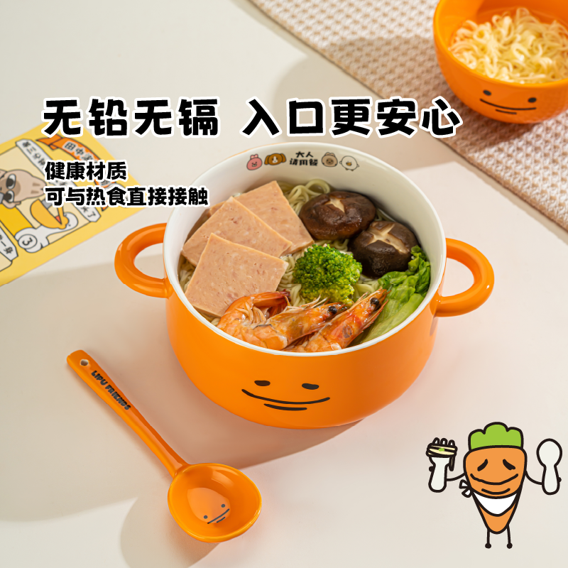 言仓暹罗厘普田中泡面碗大容量带把手汤碗一人食可爱餐具陶瓷大碗 - 言仓餐饮具旗舰店