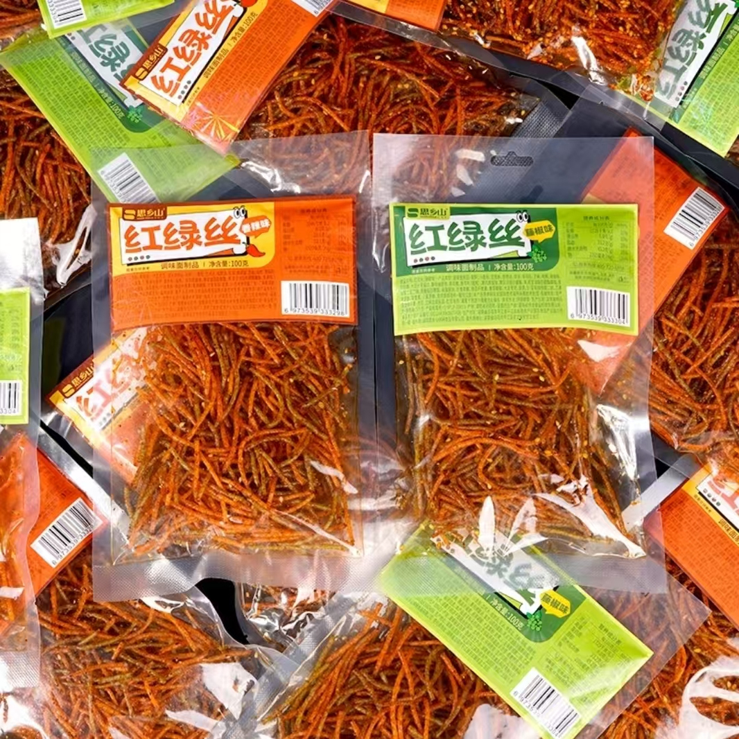 思乡山红绿丝辣条8090后怀旧辣条童年记忆麻辣解馋休闲零食辣条丝