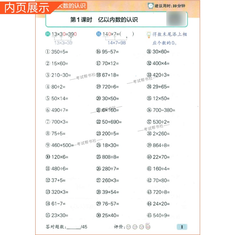 2025秋绿卡图书小学学霸口算四年级上册人教版数学算法讲解一课一练专项提升课时作业本同步练习册口算天天练题课后练习 - 考试帮书社